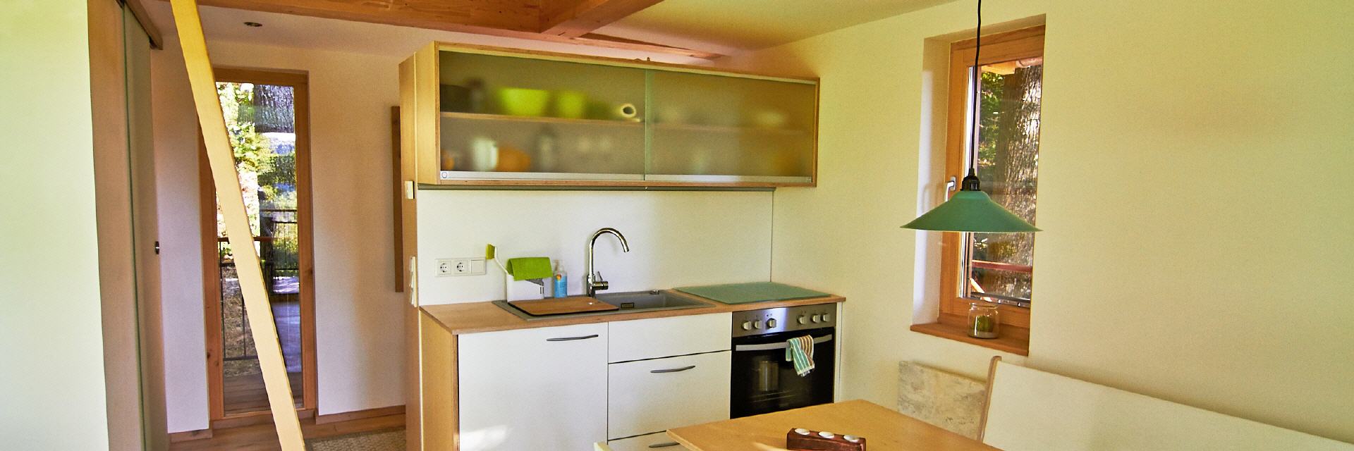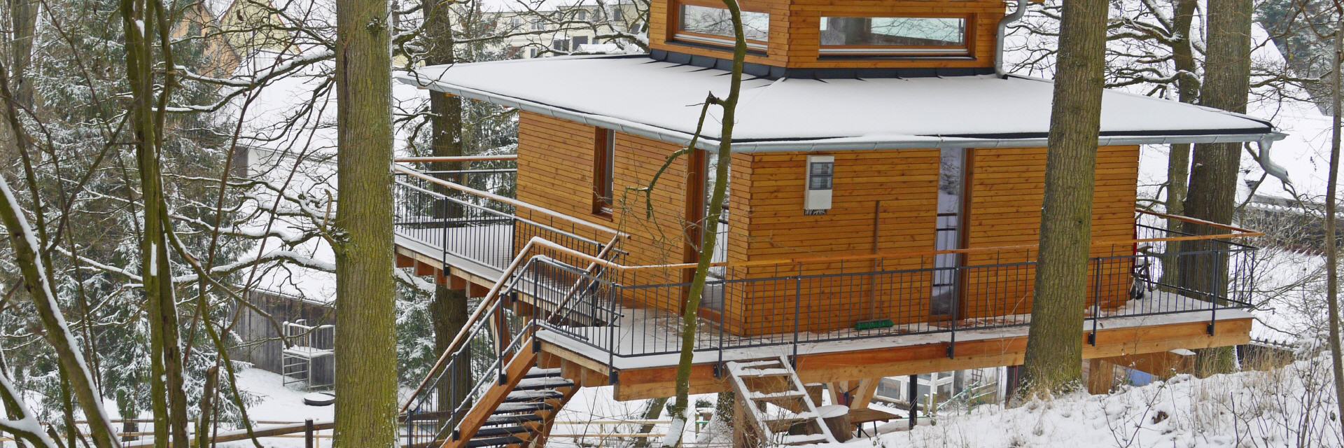 Liebevoll eingerichtetes, beheiztes, ganzjährig zu nutzendes Baumhaus. Auf Stelzen stehend, am Waldrand eines Eichenwaldes in idyllischer Umgebung mit Blick über das kleine fränkische Dorf Bottenbach. Das Haus ist über einen eigenen Zugang von der Straße aus, unabhängig vom Bauernhof, erreichbar.